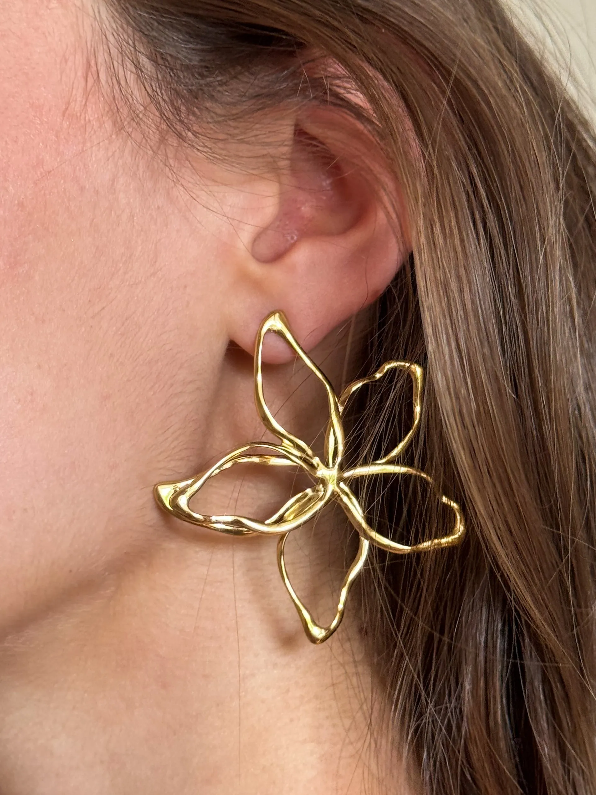 Jolies boucles en acier inoxydable, en forme de fleur imposante mais très légère au porté.