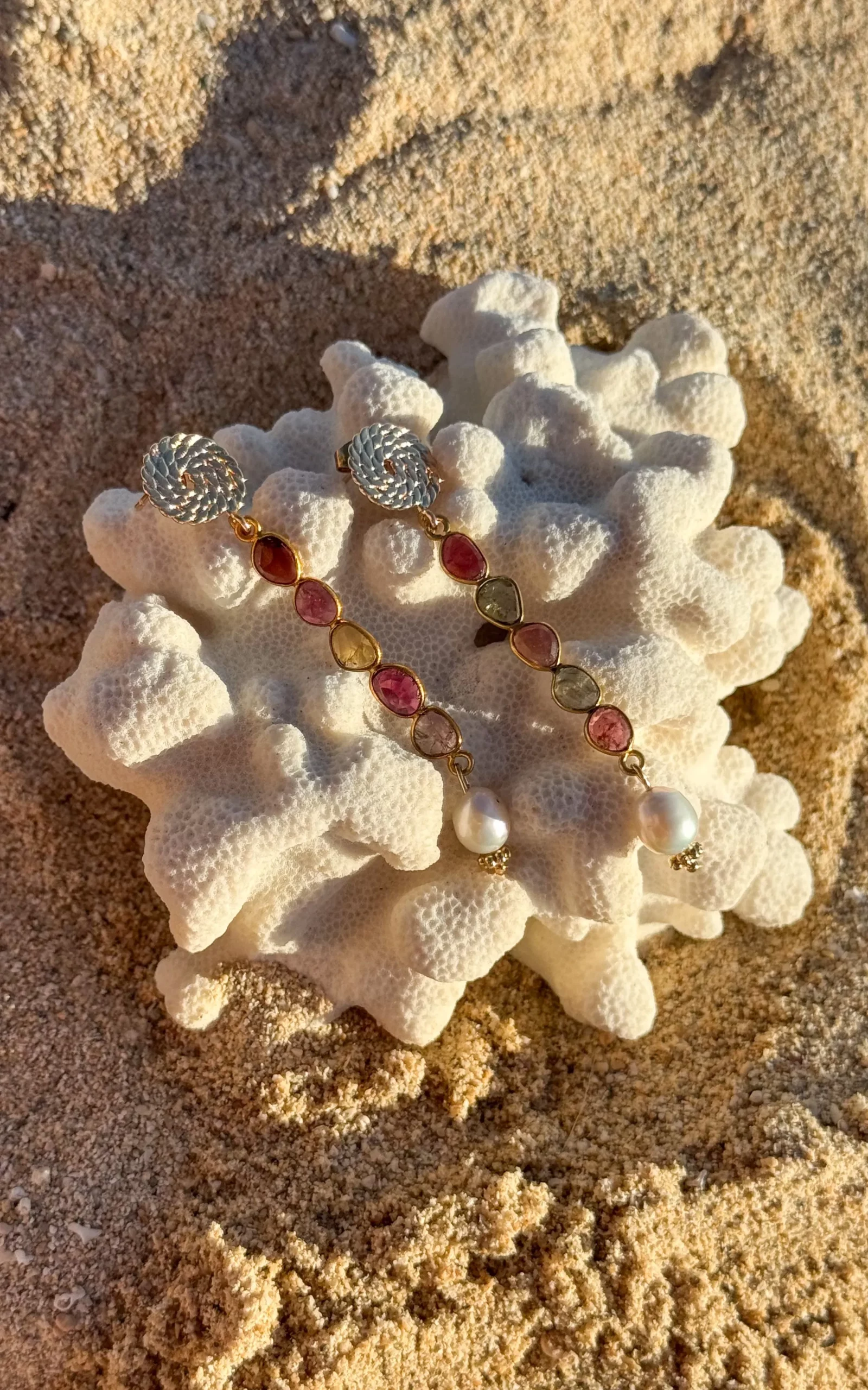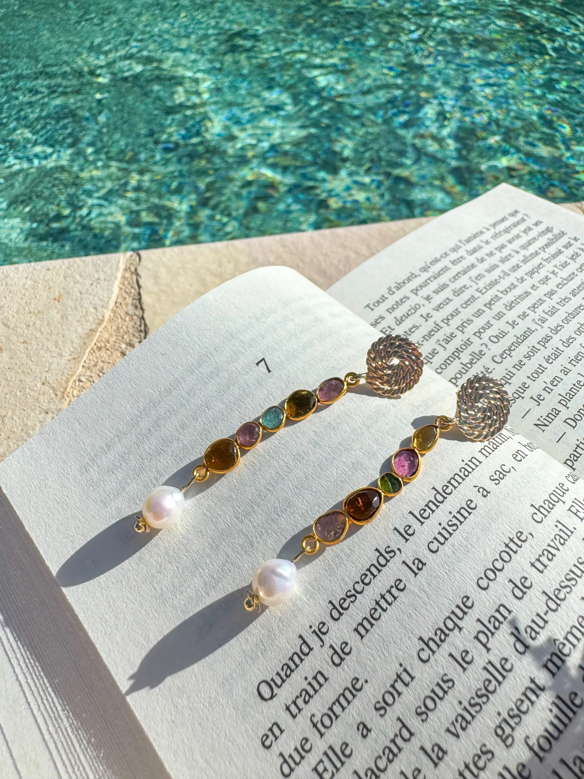Cette paire est précieuse, je vous recommande de ne pas dormir ou de vous baigner avec afin de prendre soin des tourmalines melon d’eau et de la perle de culture.