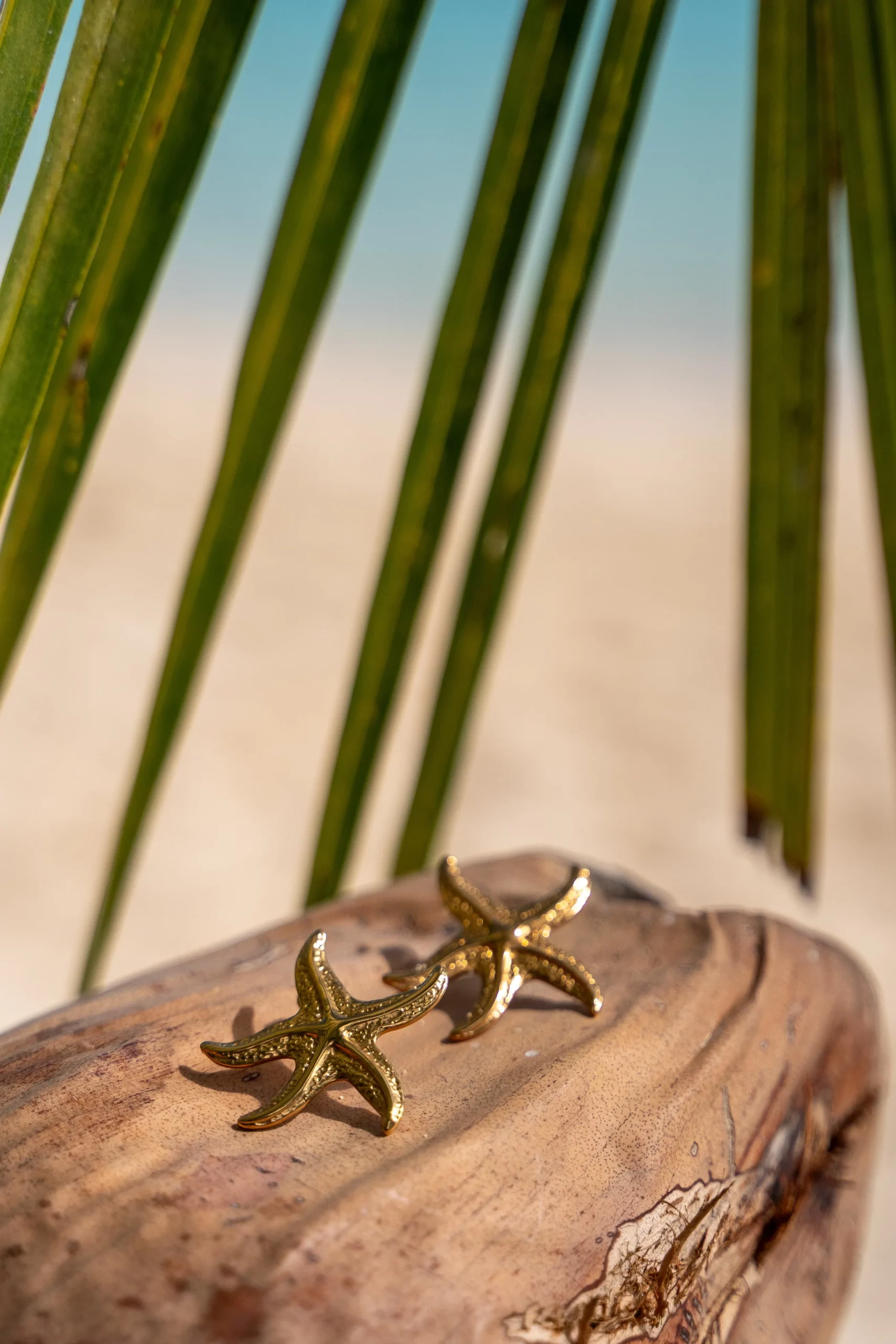 Paire de boucles d’oreilles en forme délicate d’étoile de mer, qui évoquent la plage et l’évasion.
