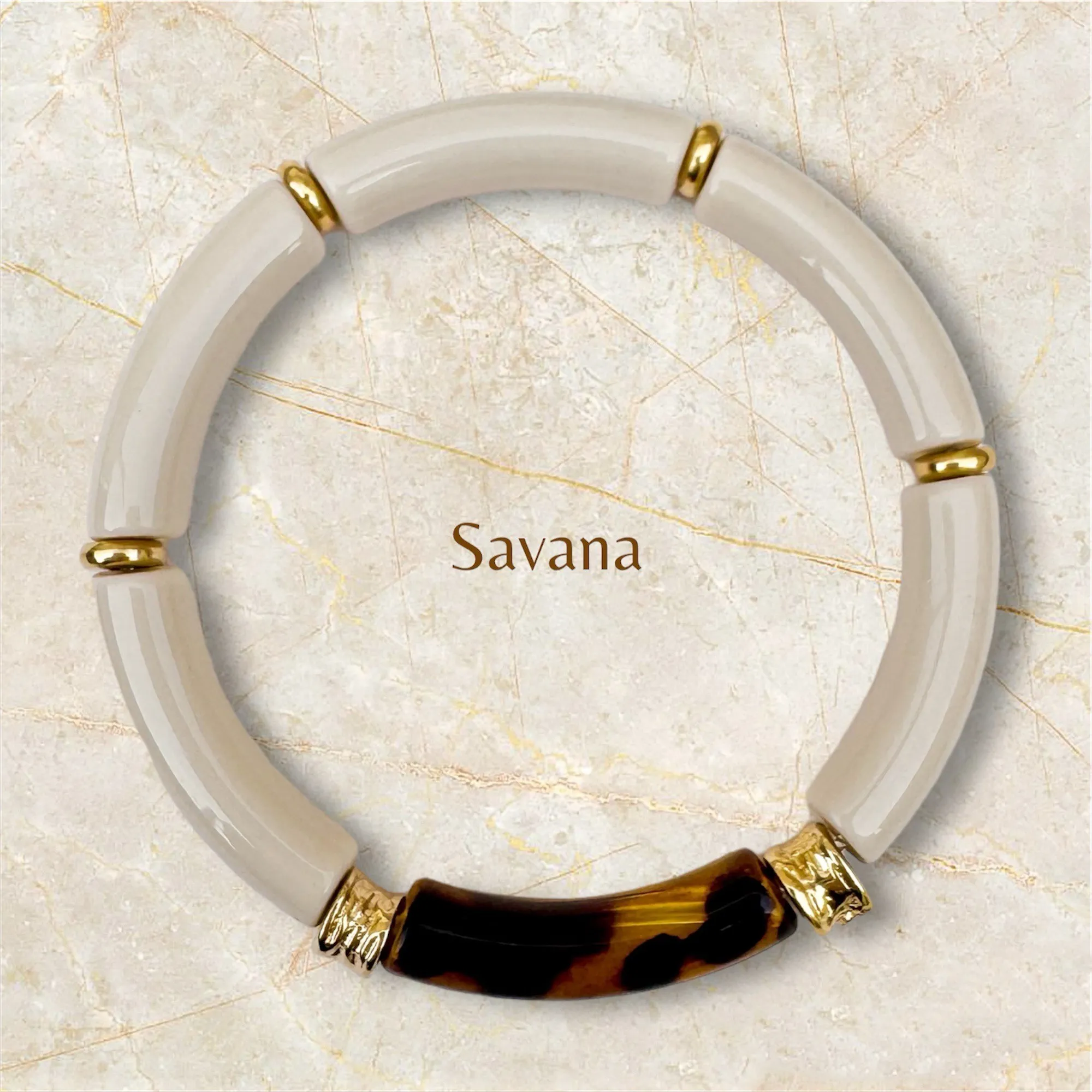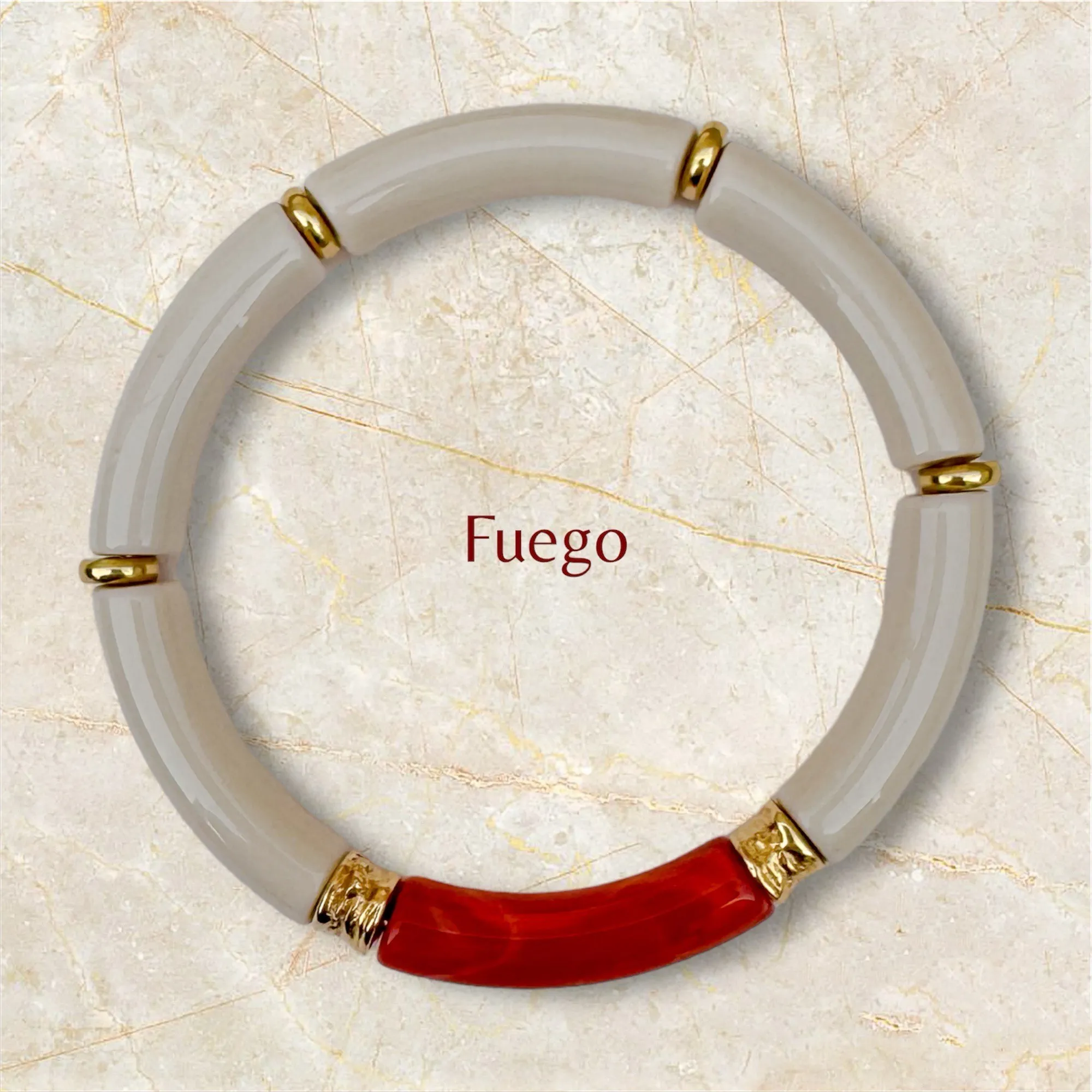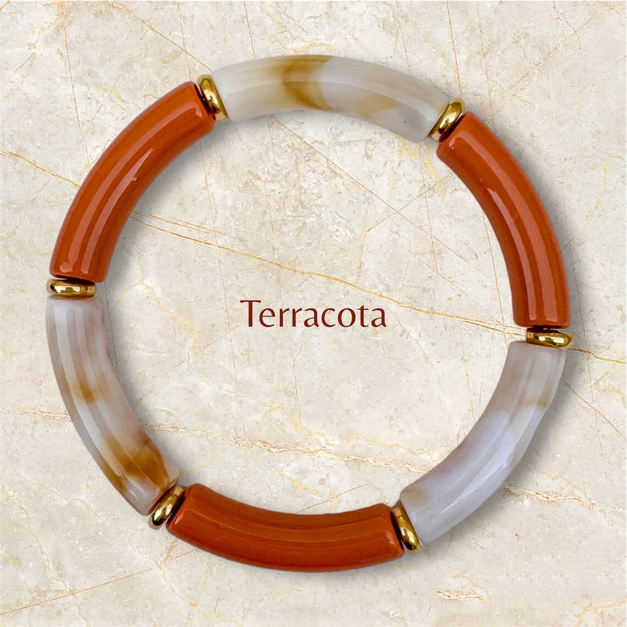 Bracelet coloré élastique composé de perles de résines acryliques.