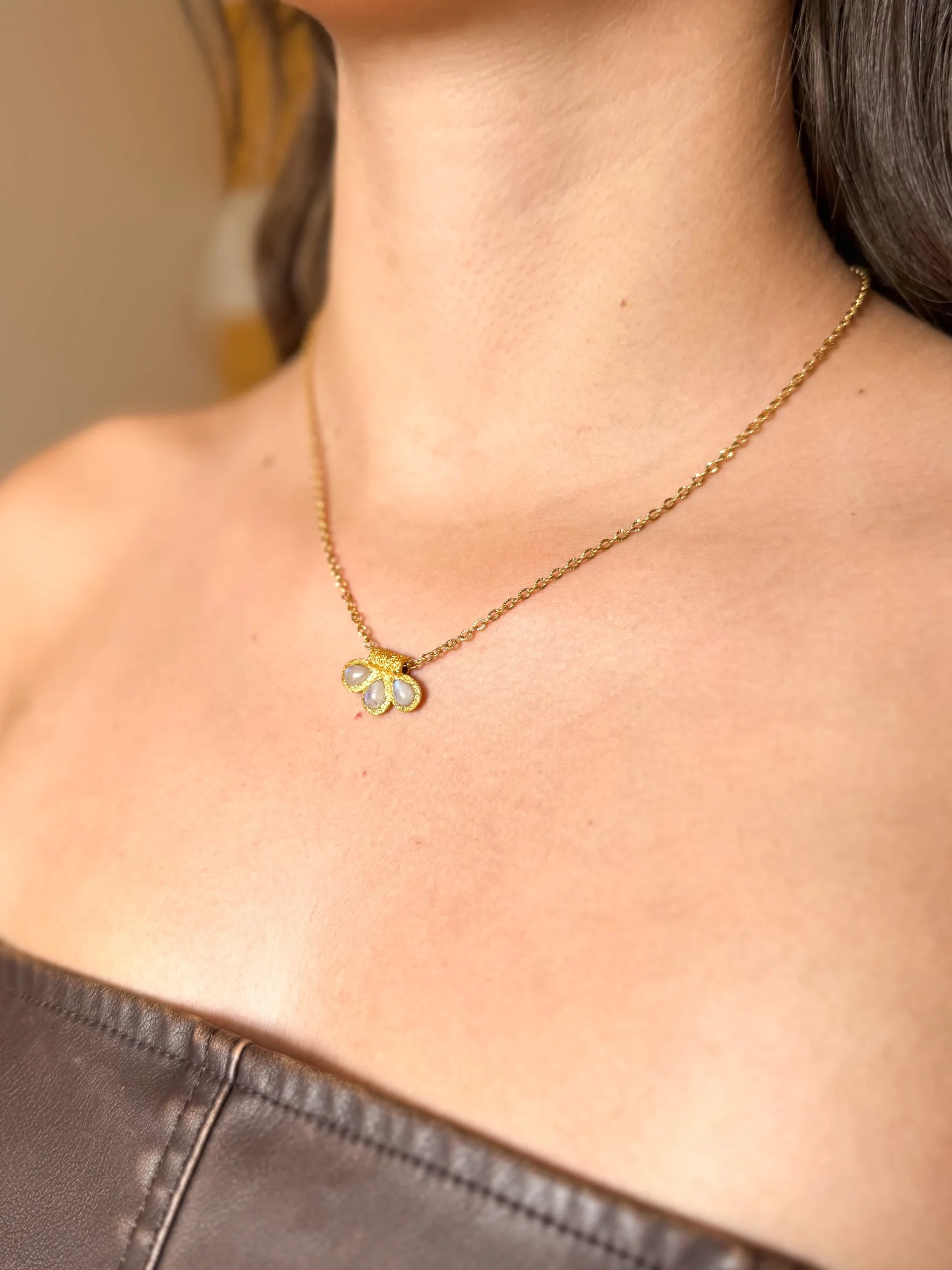 Collier élégant composé de trois pierres en forme de gouttes, en pierre de lune.